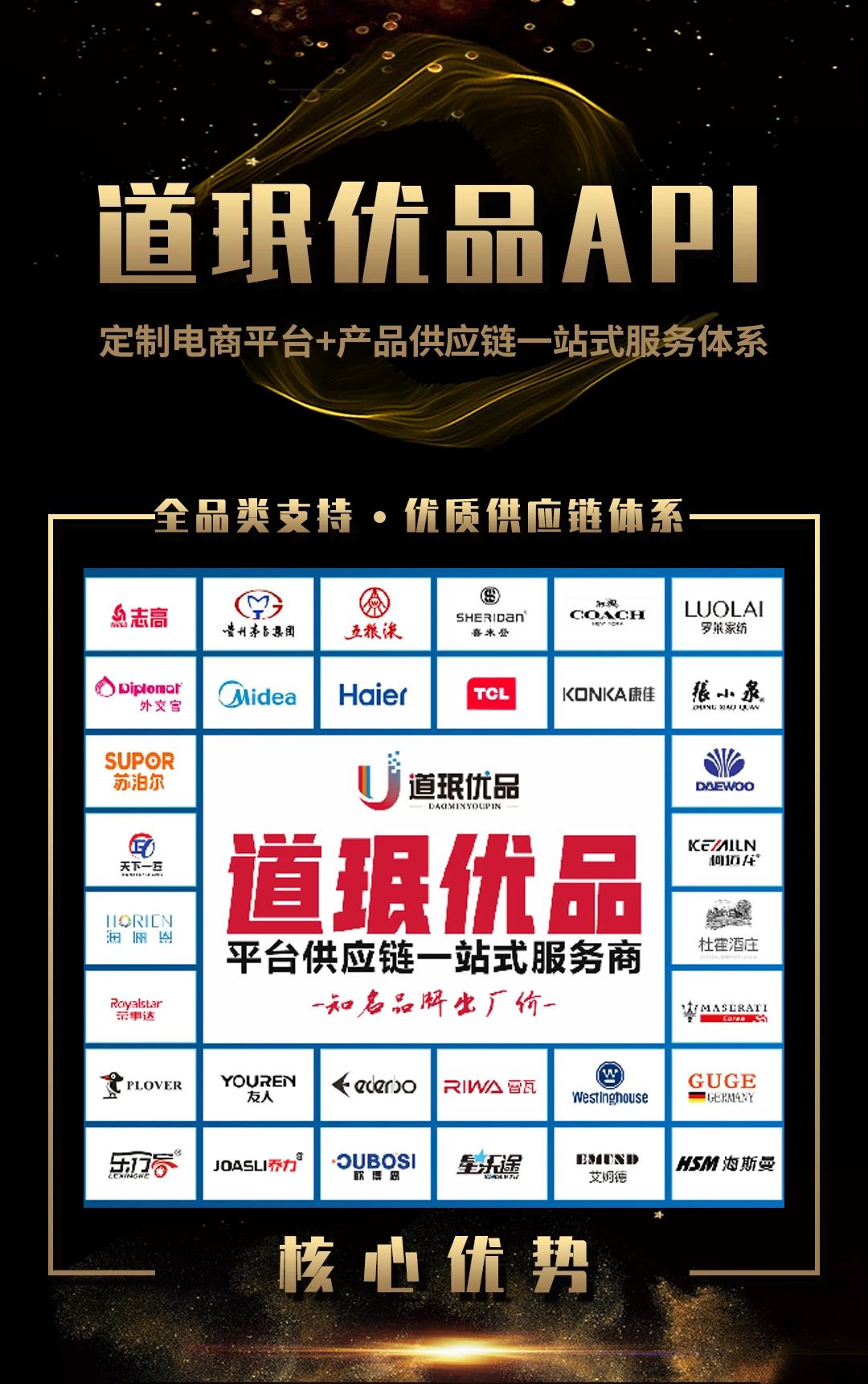 更重要的是,道珉优品API系统可与互联网企业直接进行对接。商城内所售商品均为各大品牌供应商官方授权合作,在京东、天猫等电商平台均有售,完全支持全国联保和售后三包服务。